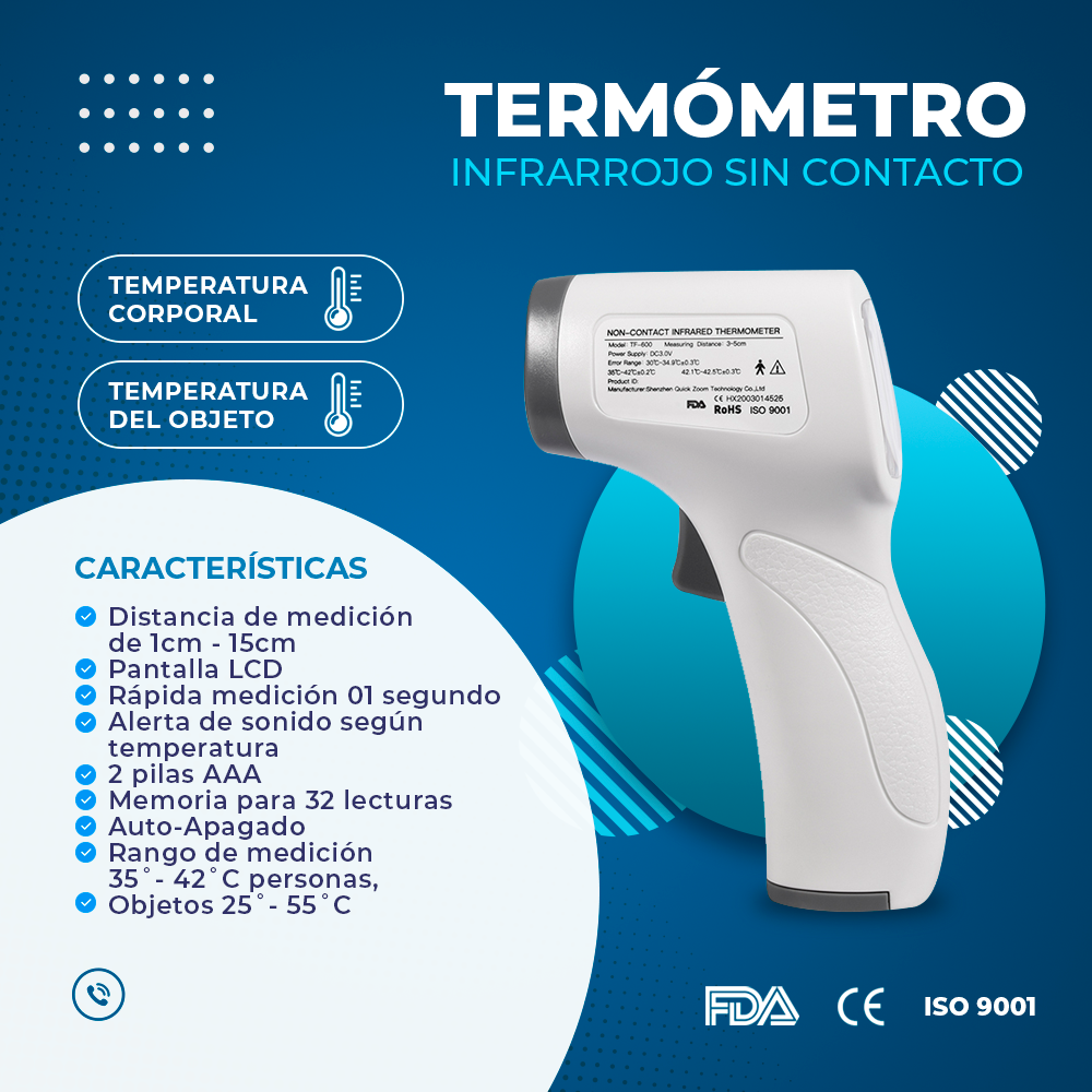 - Rango de medición 35º – 42ºC personas